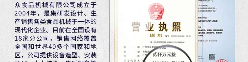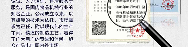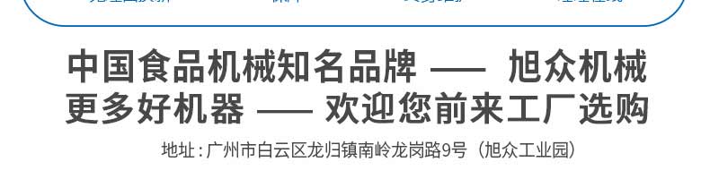 廣州旭眾食品機(jī)械有限公司是一家集科研開發(fā),生產(chǎn)設(shè)計,營銷服務(wù)為一體的現(xiàn)代化生產(chǎn)企業(yè)?,F(xiàn)代化生產(chǎn)車間,精湛制造技術(shù),所產(chǎn)機(jī)械歷經(jīng)市場重重考驗(yàn),不斷贏得海內(nèi)外客戶的贊譽(yù)。