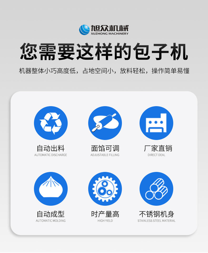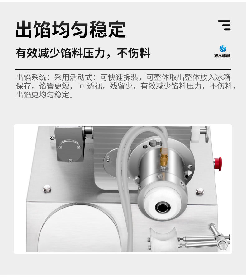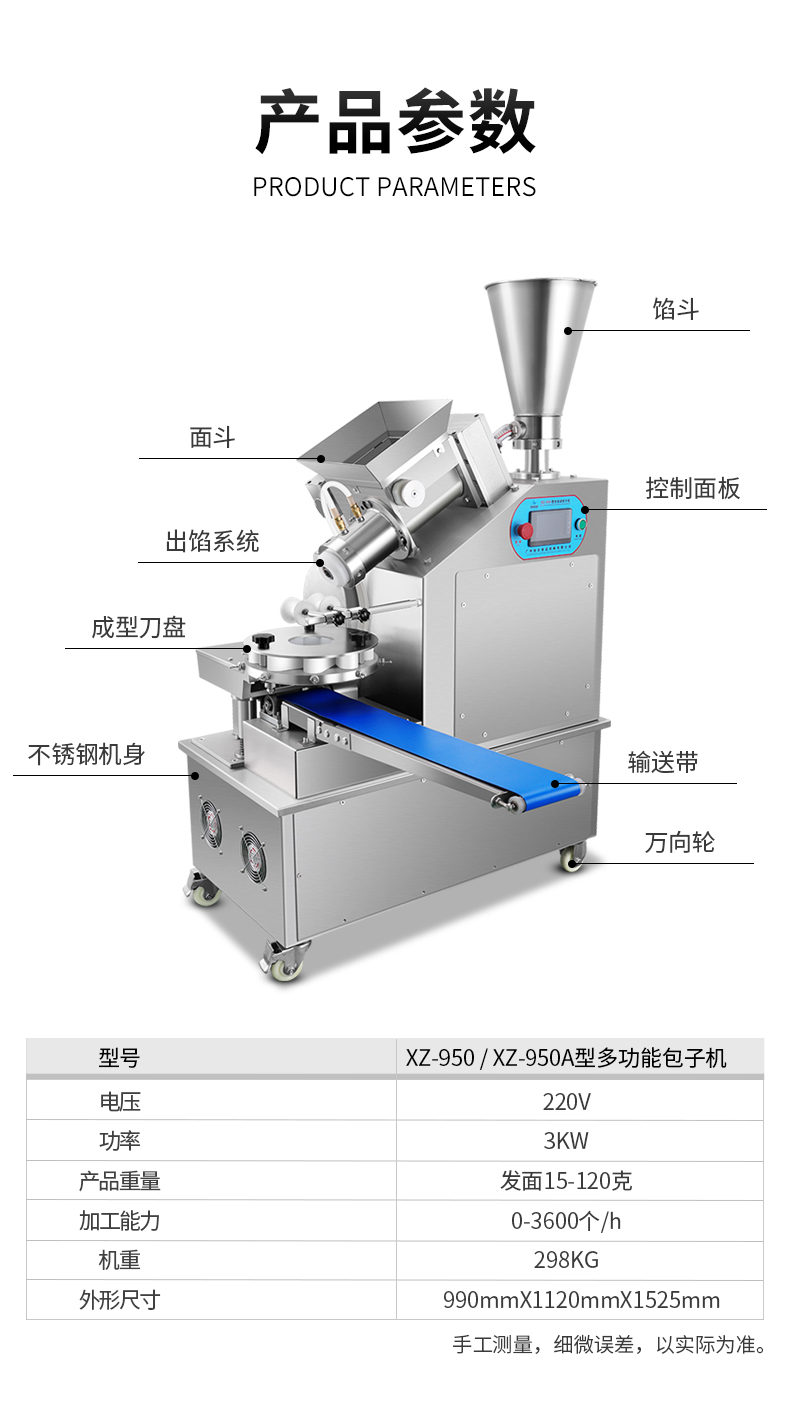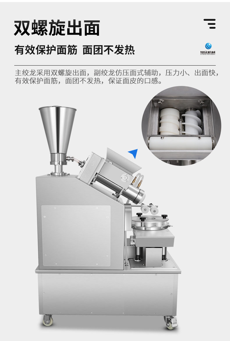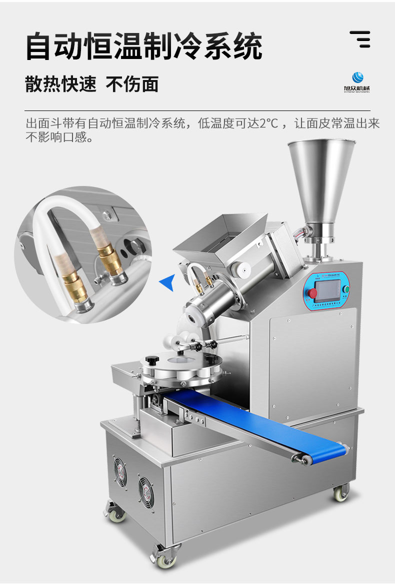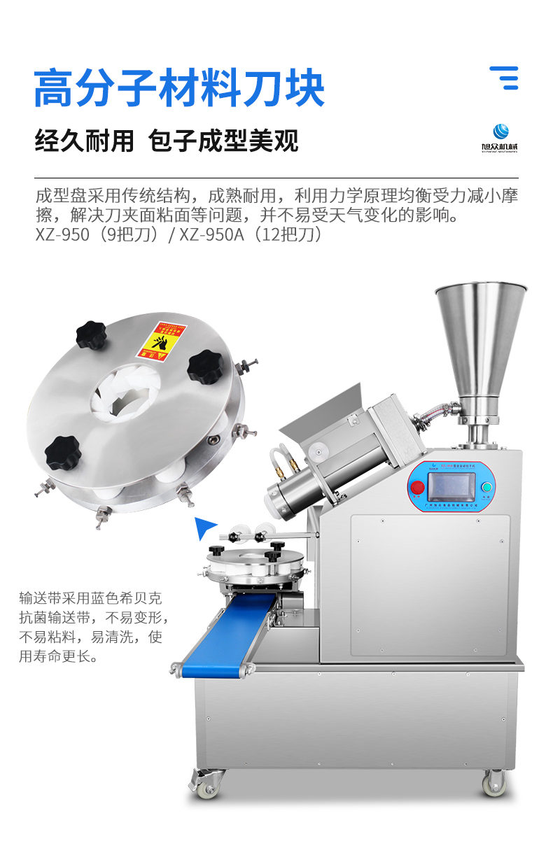 XZ-950型多功能包子機(jī),多功能包子機(jī),出面快速、不傷面筋。無需使用手壓面/推面,帶有自動恒溫制冷系統(tǒng),占地空間小,放料輕松。