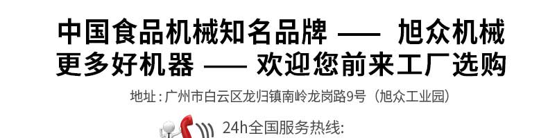 廣州旭眾食品機(jī)械有限公司是一家集科研開發(fā),生產(chǎn)設(shè)計(jì),營(yíng)銷服務(wù)為一體的現(xiàn)代化生產(chǎn)企業(yè)?,F(xiàn)代化生產(chǎn)車間,精湛制造技術(shù),所產(chǎn)機(jī)械歷經(jīng)市場(chǎng)重重考驗(yàn),不斷贏得海內(nèi)外客戶的贊譽(yù)。