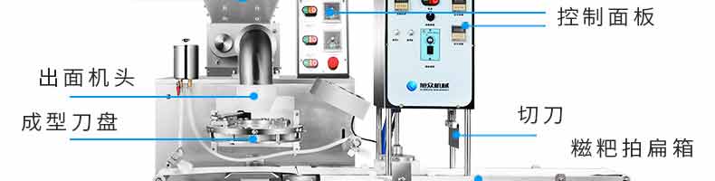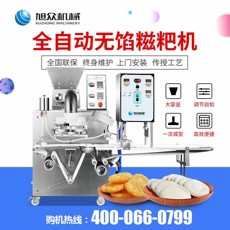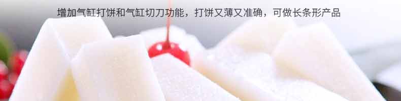 6000A無餡糍粑機,智能調控囿板,智能內芯控制,可自由調節(jié)輸送,切刀和打餅的時間。調節(jié)自如拍扁成型,增加氣缸打餅和氣缸切刀功能,打餅又薄又準確,可做長條形產品