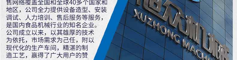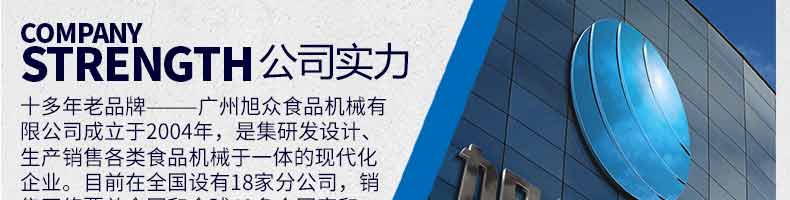 廣州旭眾食品機械有限公司是一家集科研開發(fā),生產設計,營銷服務為一體的現代化生產企業(yè)?,F代化生產車間,精湛制造技術,所產機械歷經市場重重考驗,不斷贏得海內外客戶的贊譽。