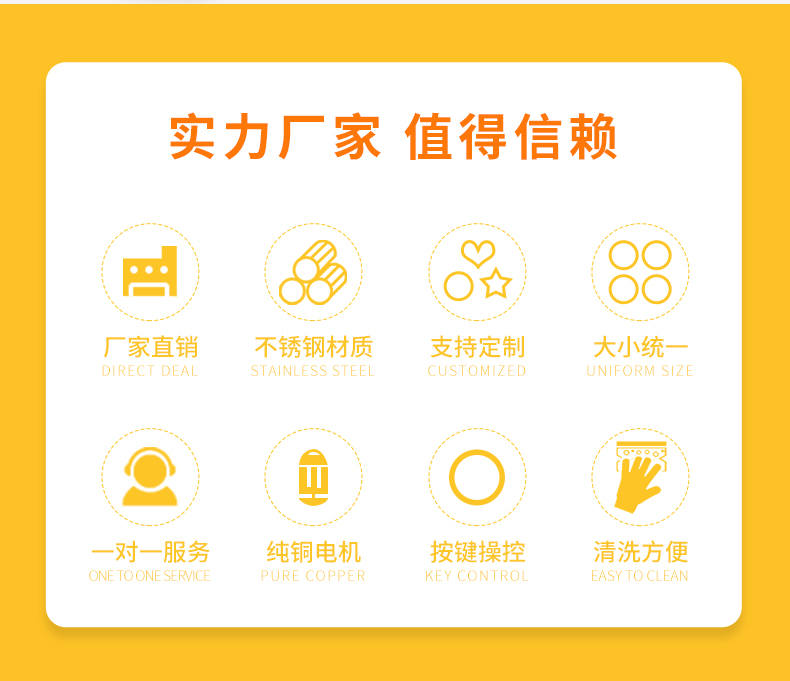 廣州旭眾食品機械有限公司是一家集科研開發(fā),生產(chǎn)設計,營銷服務為一體的現(xiàn)代化生產(chǎn)企業(yè)?,F(xiàn)代化生產(chǎn)車間,精湛制造技術,所產(chǎn)機械歷經(jīng)市場重重考驗,不斷贏得海內外客戶的贊譽。