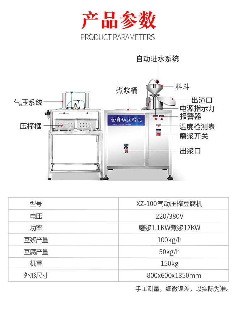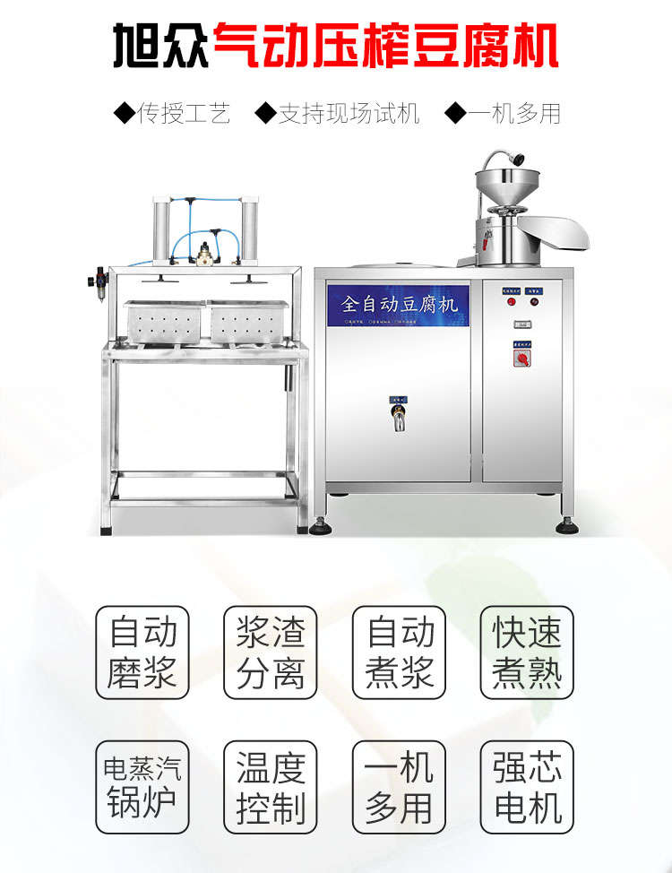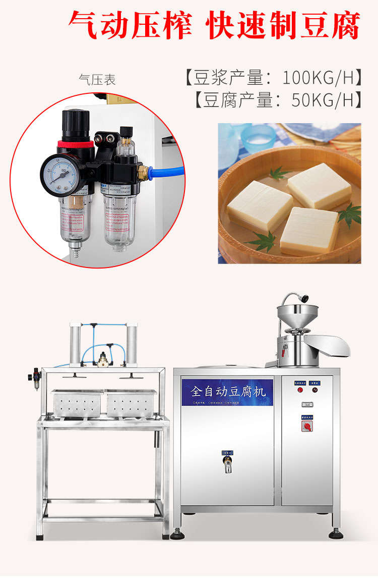 XZ-100型全自動豆腐機(jī),商用全自動氣動壓榨豆腐機(jī)氣動壓榨,分離漿水,不傷豆腐,定型美觀。