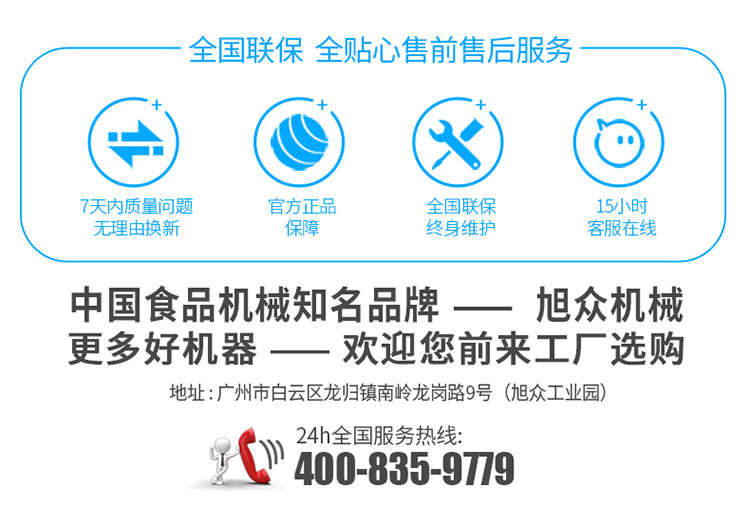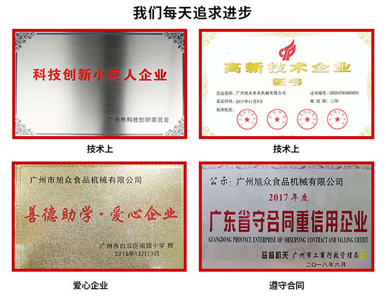 廣州旭眾食品機(jī)械有限公司是一家集科研開發(fā),生產(chǎn)設(shè)計(jì),營銷服務(wù)為一體的現(xiàn)代化生產(chǎn)企業(yè)?,F(xiàn)代化生產(chǎn)車間,精湛制造技術(shù),所產(chǎn)機(jī)械歷經(jīng)市場重重考驗(yàn),不斷贏得海內(nèi)外客戶的贊譽(yù)。