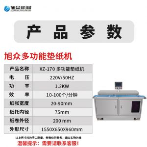 XZ-170多功能墊紙機,適用于大規(guī)模生產(chǎn)多功能墊紙機適用于包子、饅頭、豆包等需要墊包紙的食。伺服控制、墊紙長度可調(diào)整。高效墊紙告別人工旭眾牌ⅩZ-170多功能墊紙機適用于規(guī)模生產(chǎn)的食品企業(yè)制作包子機、饅頭等食品的自動墊包紙設備。