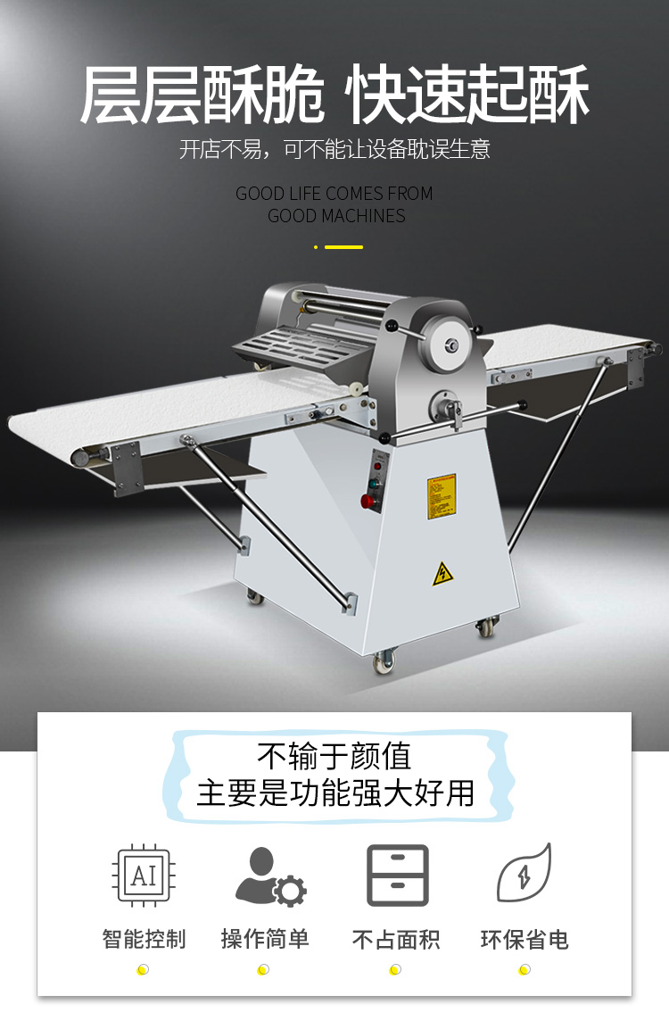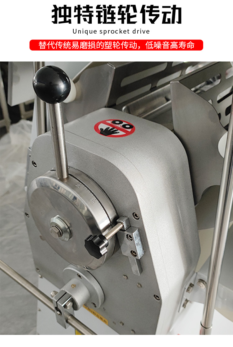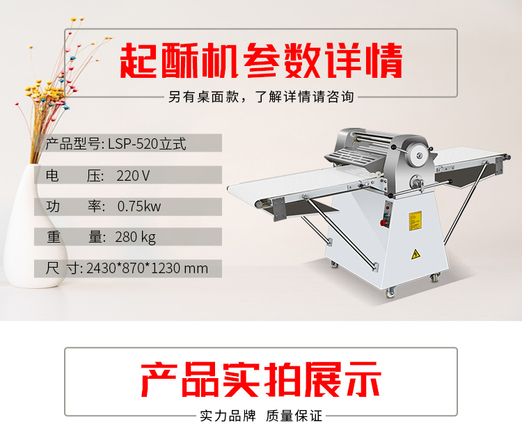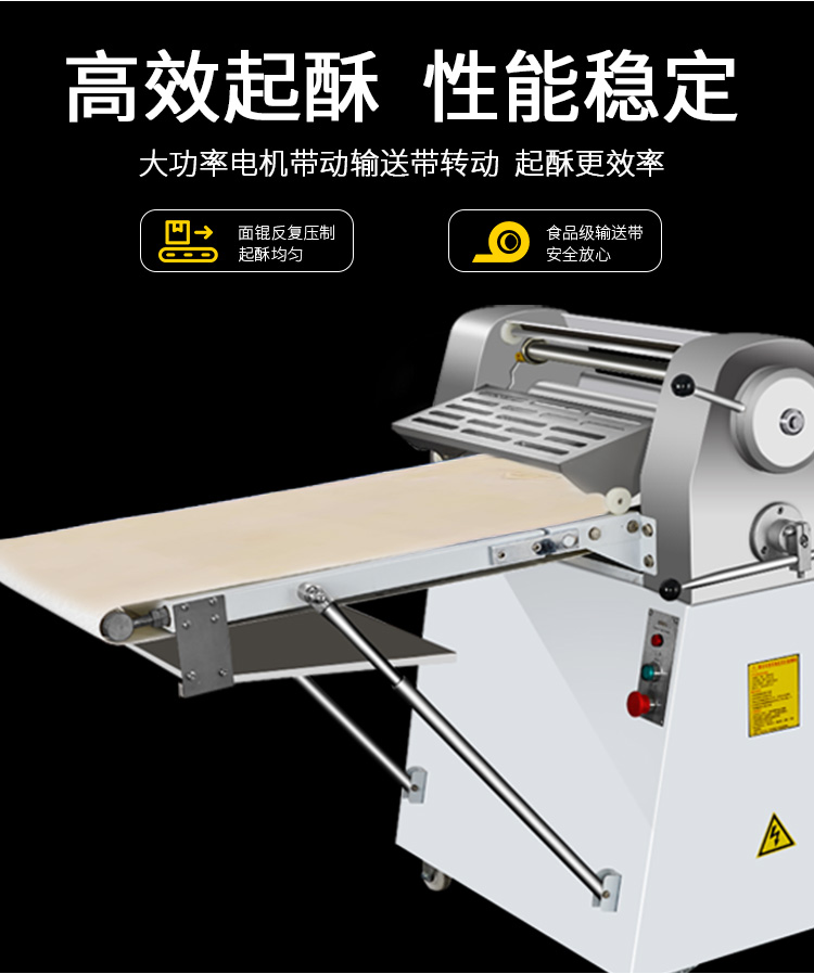LSP-520酥皮機,采用獨特的鏈輪傳動替代了傳統(tǒng)易磨損的塑輪傳動,低噪音,高壽命滾輪經(jīng)過特殊工藝處理,不粘面,不易刮傷適用于手撕面包、羊角面包、蛋撻、老婆餅、千層餅,等酥皮類食品,也可用于輾壓面團。