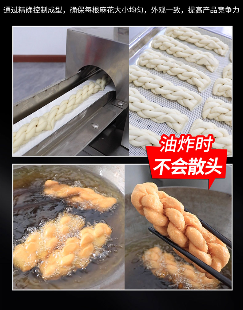 XZ-MH-200麻花機,技術(shù)支持、贈送配方、支持定制,1小時加工60斤麻花。切段均勺、且不粘面,麻花長短可調(diào)??赏ㄟ^調(diào)節(jié)切刀時間、控制麻花的長度。通過精確控制成型,確保每根麻花大小均勻,外觀一致,提高產(chǎn)品競爭力。
