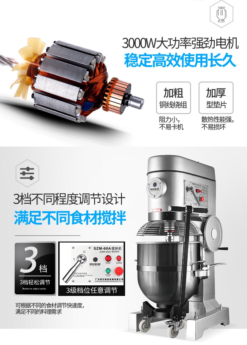 多功能攪拌和面機(jī),創(chuàng)業(yè)神器,開創(chuàng)廚房新時(shí)代。多功能高效率,讓您省心省力又省事。360行星軌跡攪打系統(tǒng),攪拌均勻保持口感。3000W大功率強(qiáng)勁電機(jī),穩(wěn)定高效使用長(zhǎng)久。