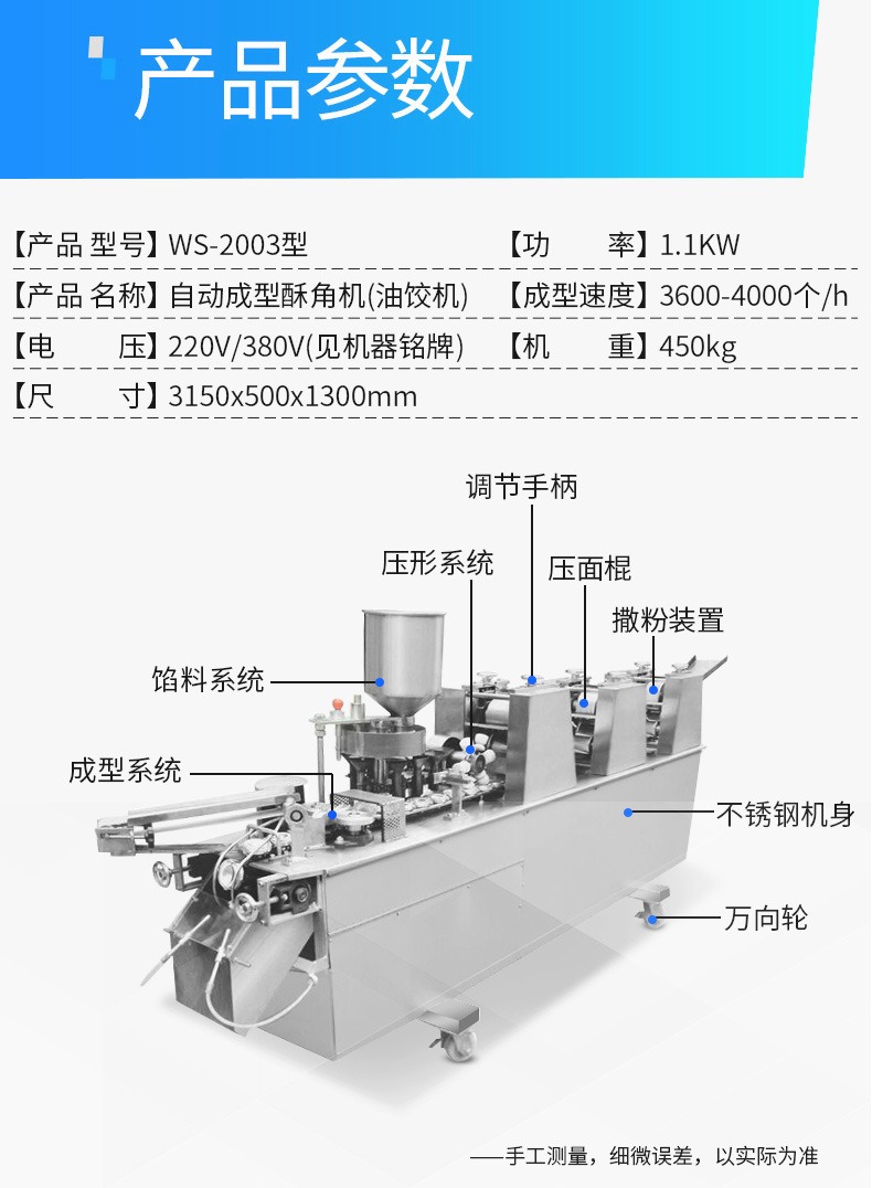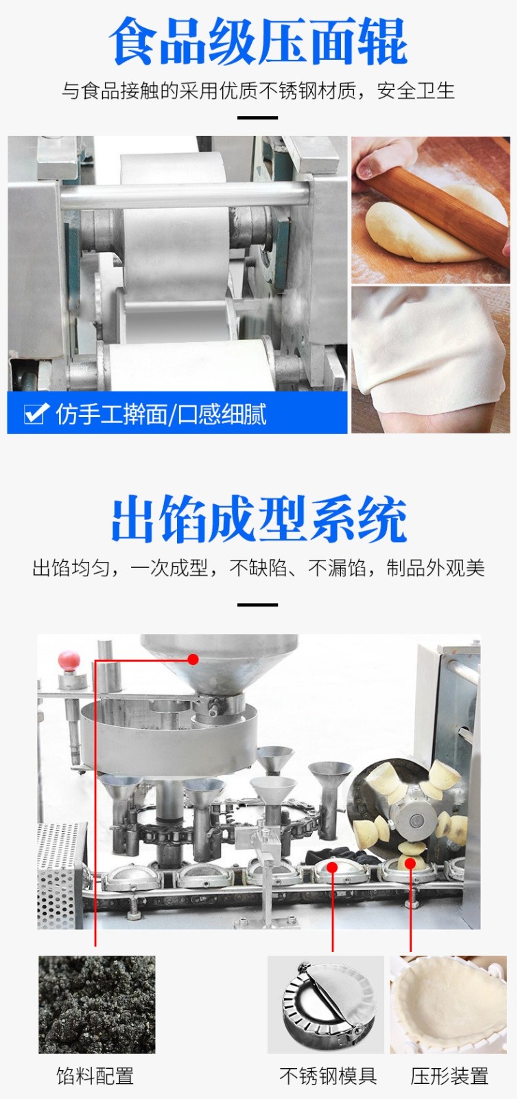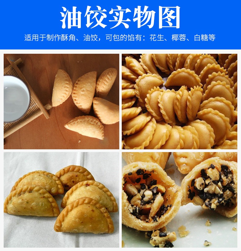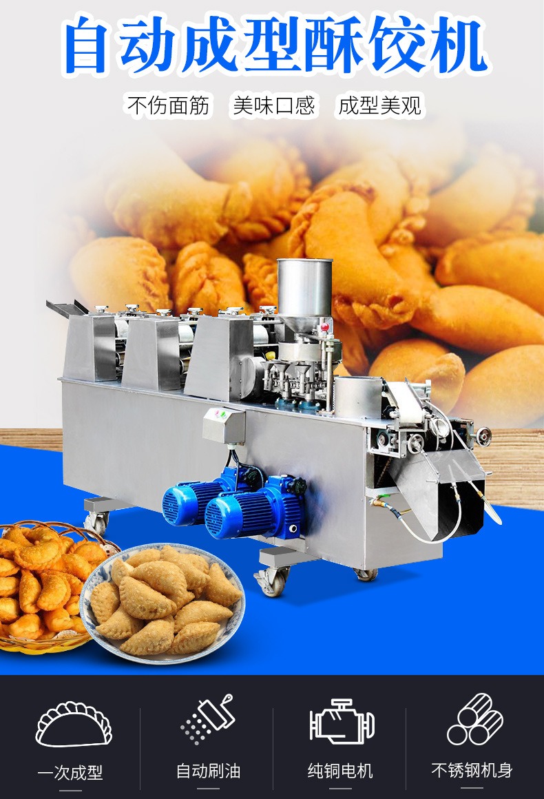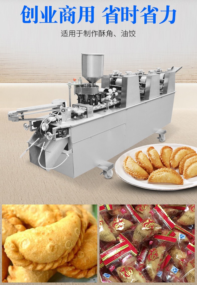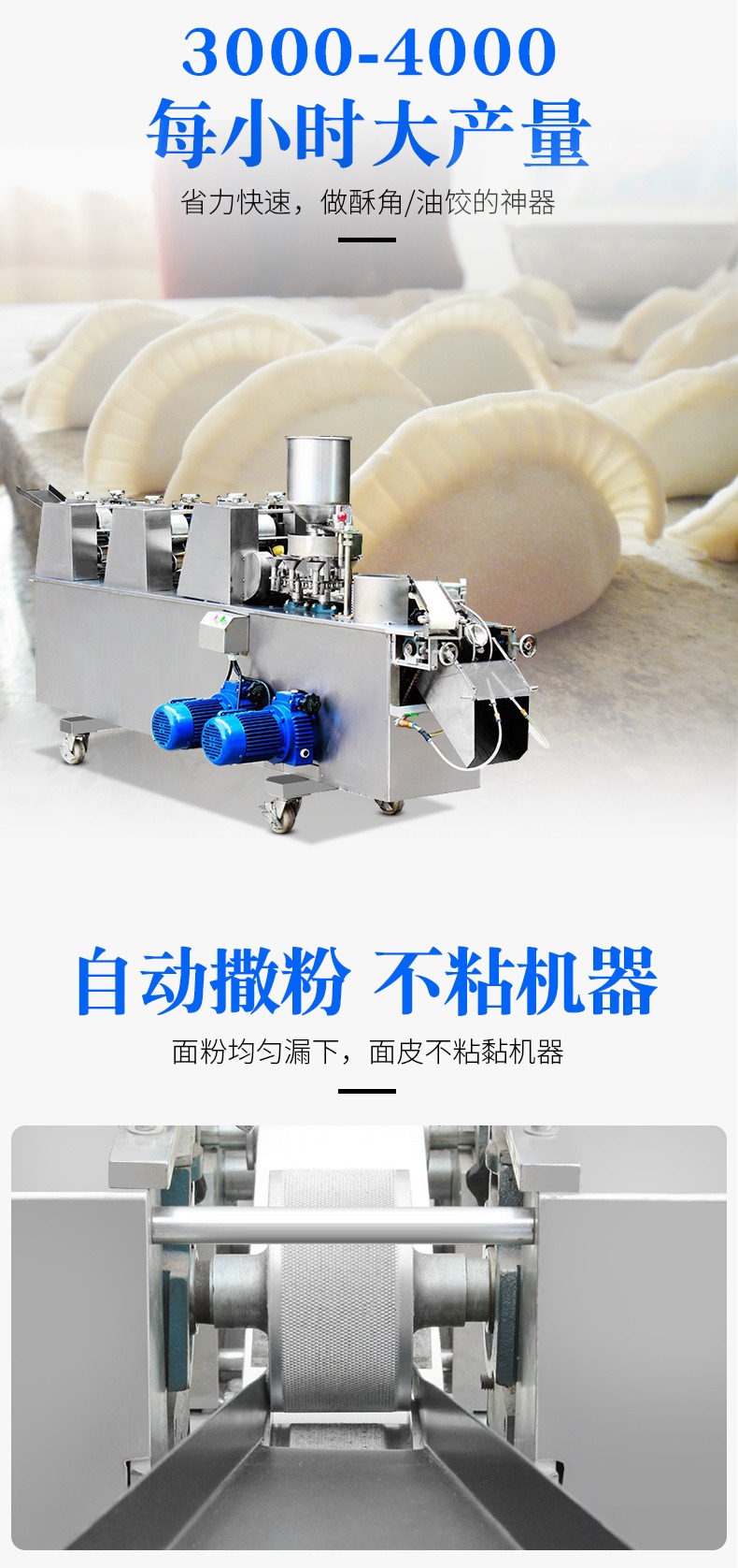 自動成型油餃機,創(chuàng)業(yè)商用、省時省力。適用于制作酥角、油餃。3000-4000每小時大產(chǎn)量。省力快速,做酥角、油餃的神器。自動撒粉 不粘機器。面粉均勻漏下,面皮不粘黏機器。
