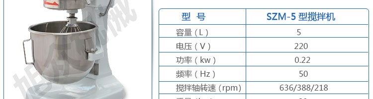 SZM-5型攪拌機,可用于攪拌奶油、蛋糕液、餡料及和制面團等操作。打蛋攪拌機等作攪拌食料、揉和面團之用,是生產(chǎn)優(yōu)質(zhì)糕點的理想設(shè)備,適用于酒店、飯店、學校部門、面包屋以及食品廠家。