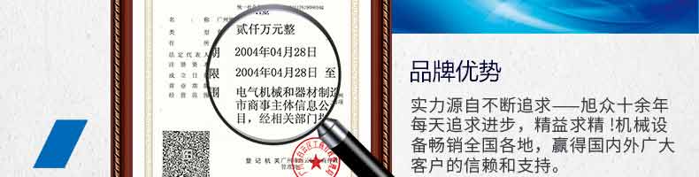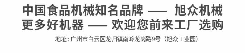 廣州旭眾食品機(jī)械有限公司是一家集科研開發(fā),生產(chǎn)設(shè)計,營銷服務(wù)為一體的現(xiàn)代化生產(chǎn)企業(yè)?,F(xiàn)代化生產(chǎn)車間,精湛制造技術(shù),所產(chǎn)機(jī)械歷經(jīng)市場重重考驗(yàn),不斷贏得海內(nèi)外客戶的贊譽(yù)。