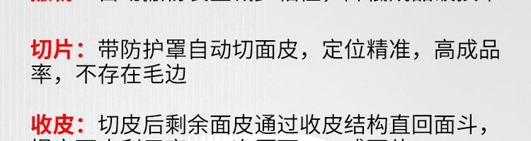 JGB-10型一體式餃子機,制皮成型一體餃子機,科技化生產(chǎn)/人性化設(shè)計。餃型可蒸、可炸、可煮,可適應(yīng)不同場合的客戶需求。功能、智能一體,以自動化科技與過硬質(zhì)量貼心服務(wù)。