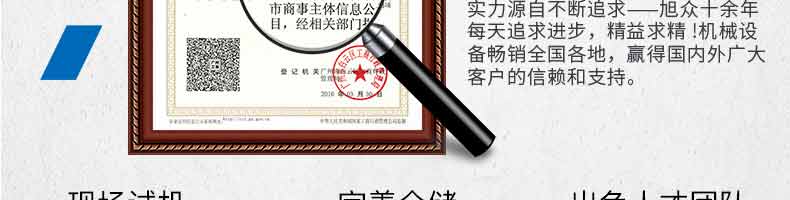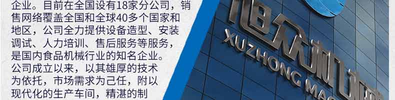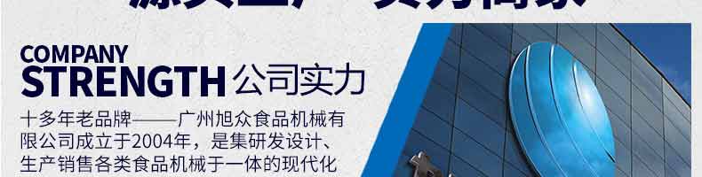 廣州旭眾食品機(jī)械有限公司是一家集科研開發(fā),生產(chǎn)設(shè)計,營銷服務(wù)為一體的現(xiàn)代化生產(chǎn)企業(yè)?,F(xiàn)代化生產(chǎn)車間,精湛制造技術(shù),所產(chǎn)機(jī)械歷經(jīng)市場重重考驗,不斷贏得海內(nèi)外客戶的贊譽。