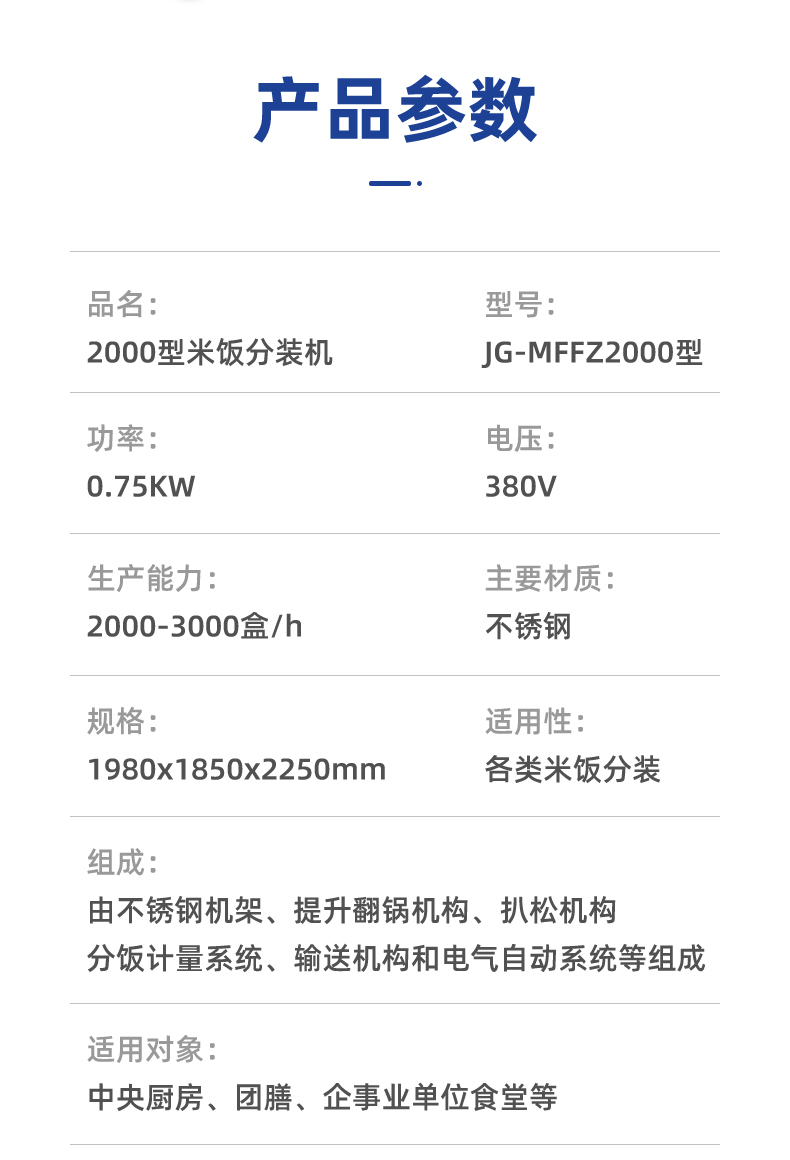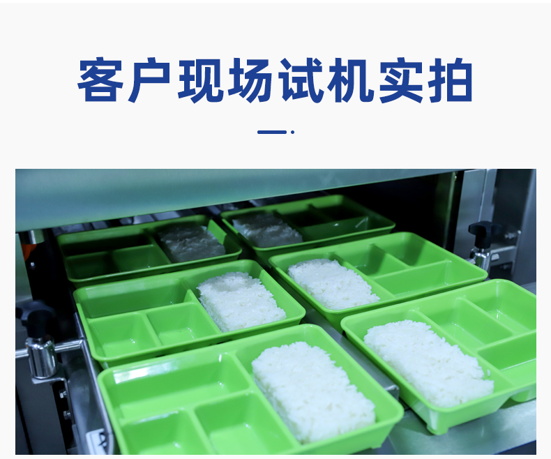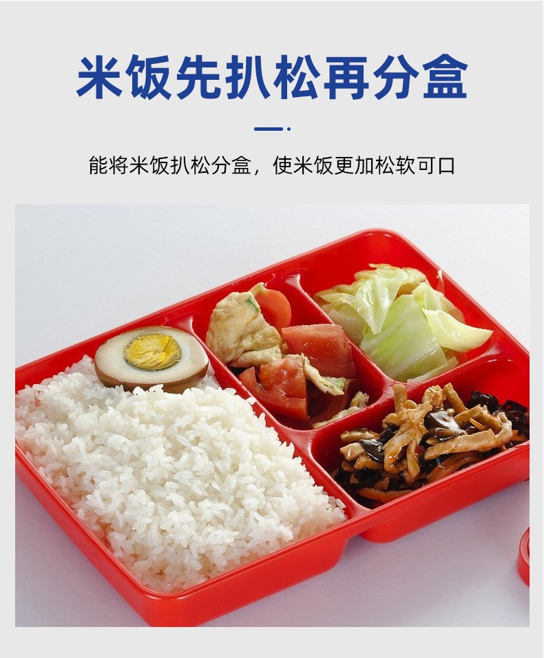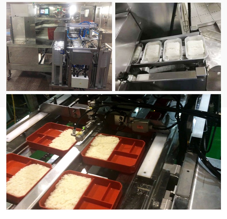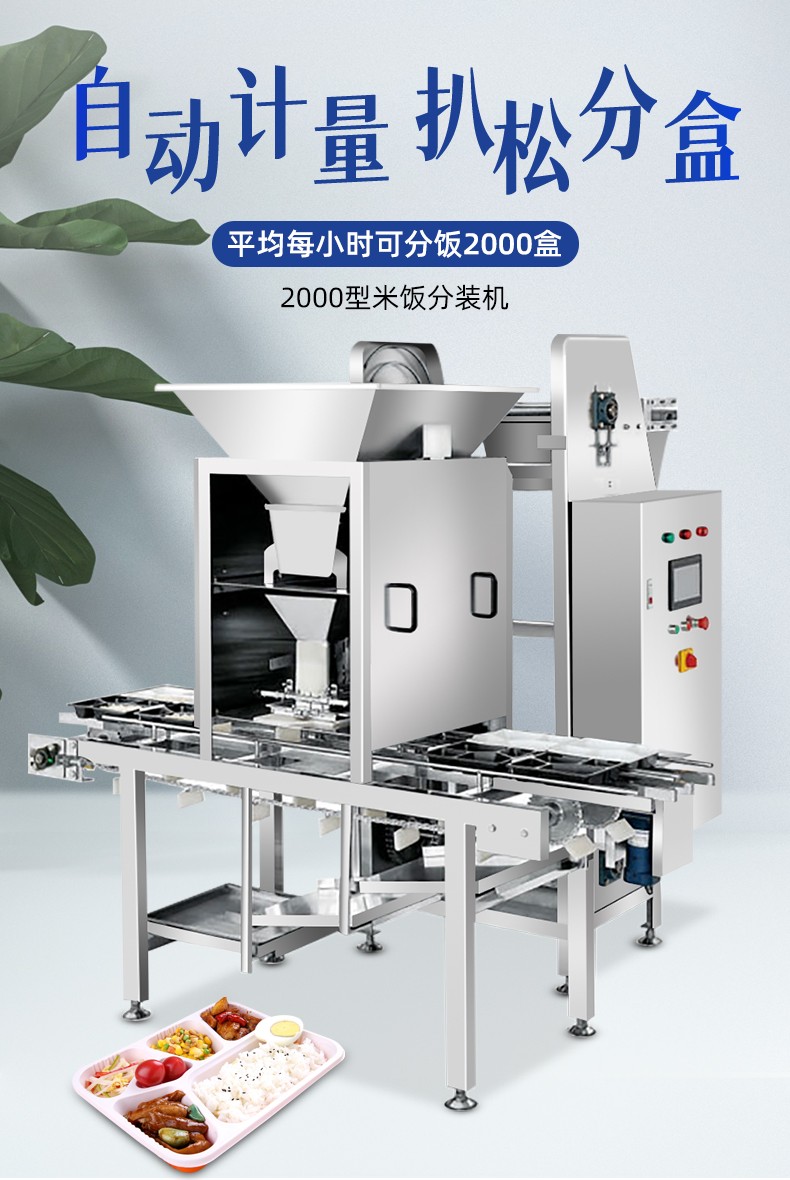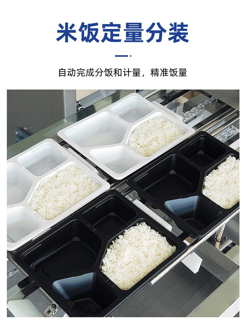 米飯分裝機(jī),適用多場合大型米飯加工中心、快餐公司、大型配餐中心企事業(yè)單位、學(xué)校食堂、釀造企業(yè)。米飯定量分裝,自動完成分飯和計(jì)量,精準(zhǔn)飯量。米飯先扒松再分盒,能將米飯扒松分盒,使米飯更加松軟可口。