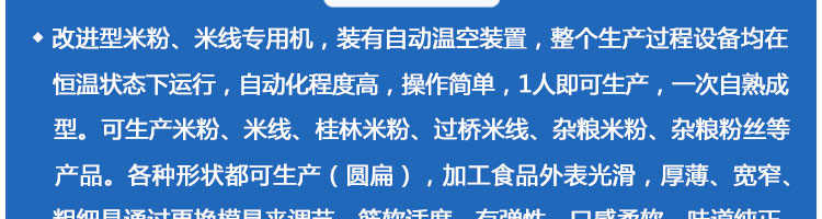 SZ-300多功能米粉機,生產(chǎn)多樣性可生產(chǎn)米粉、米線、粉絲、粉條、、年糕、玉米面條、各種雜糧粉絲、各種面條、雜糧面條、彩色面條以及以紅薯、玉米、大豆、蠶豆等制成淀粉為原料的等多種食品而且每種食品厚薄、粗細等規(guī)格可根據(jù)需要任意調整。
