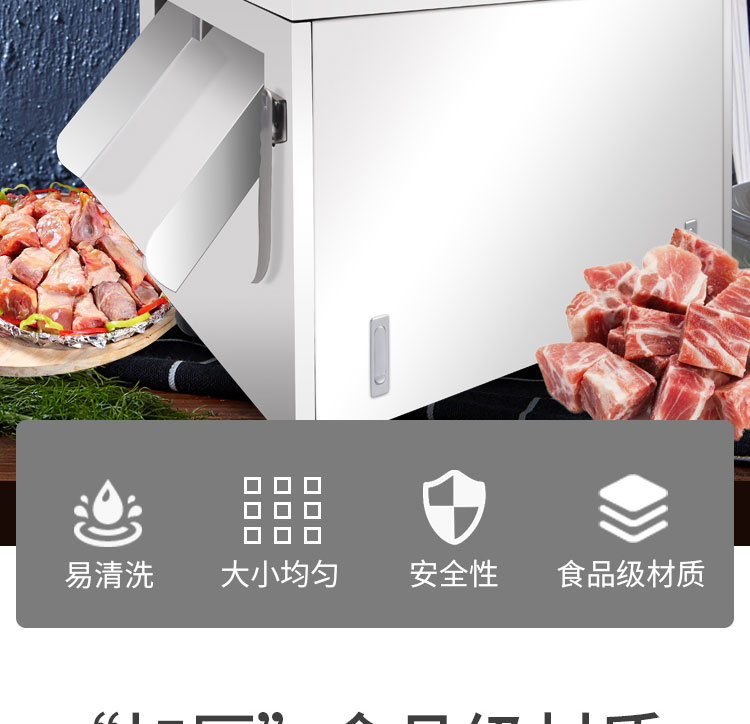 XZW-300魚(yú)禽類剁塊機(jī),色禽類剁塊機(jī)適合切凍肉帶骨/不帶骨?!凹雍瘛笔称芳?jí)材質(zhì)安全衛(wèi)生質(zhì)量保證。傳送帶推進(jìn)物料提高效率節(jié)省力氣。