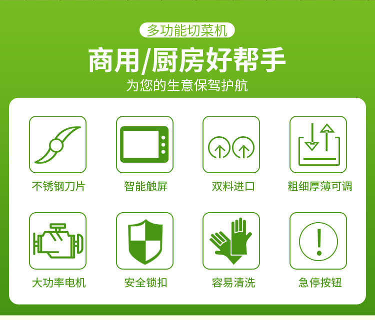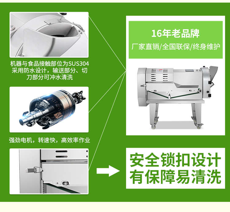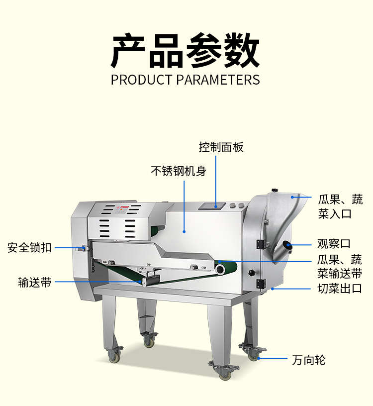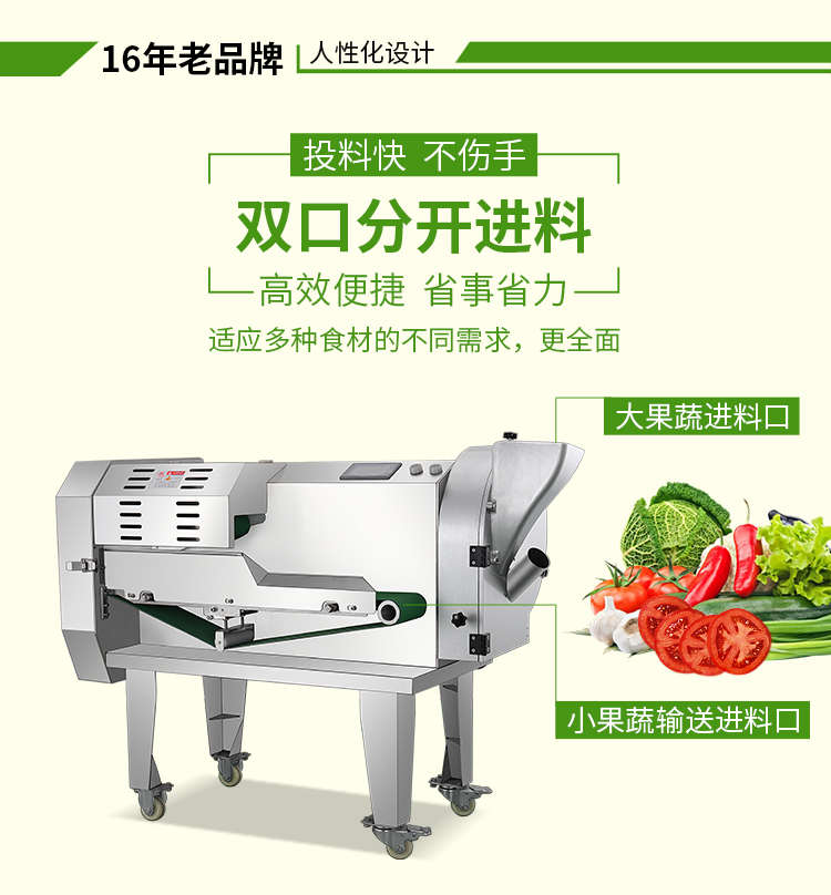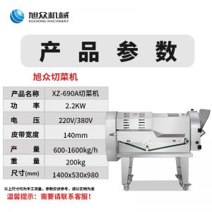 XZ-690A型多功能切菜機(jī),工作效率高,幫你省人工費(fèi)。1小時可切600kg-1600kg/h,1臺機(jī)器等于多名廚師同時為您工作。一機(jī)多用,可切瓜果、蔬菜、藥材,刀片可進(jìn)行更換,設(shè)計周到,結(jié)構(gòu)合理,簡單輕松應(yīng)對。