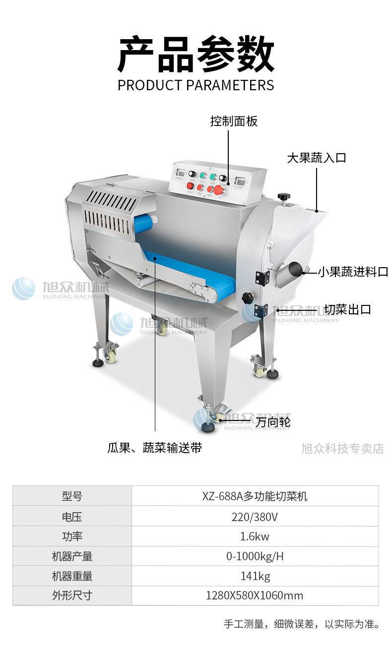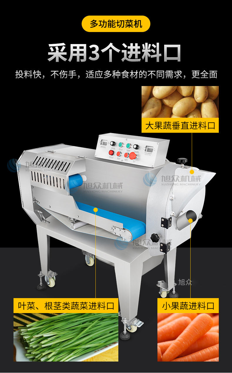 XZ-688A切菜機(jī),占地使用面積小機(jī)器小,省空間,適合飯店、食堂、酒店等使用。省事省力省人工1小時加工2000斤葉菜切刀速度為1104轉(zhuǎn)/分,切絲、切片、切丁、刀速371轉(zhuǎn)/分。