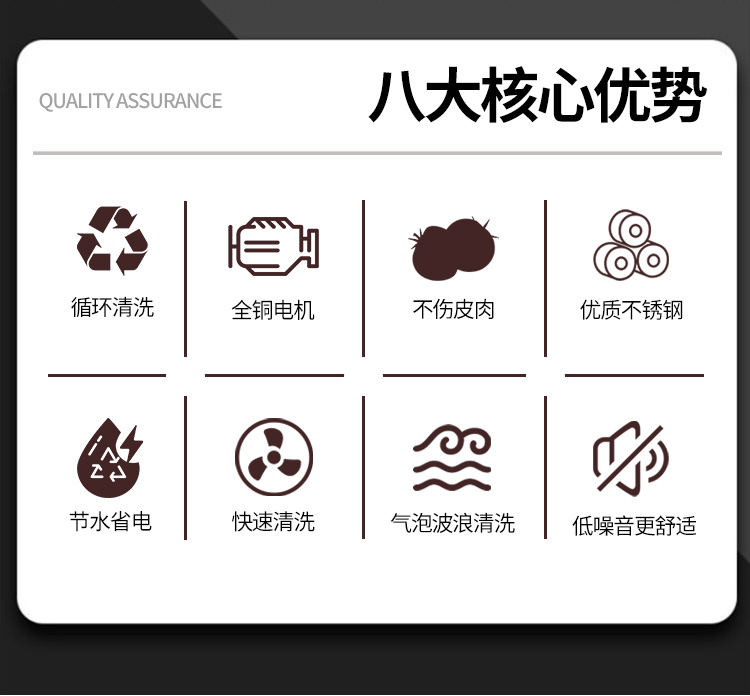 全自動果蔬氣泡清洗機(jī),堅固耐用,整機(jī)采用質(zhì)不誘鋼。由防銹外層、鋼層底、強(qiáng)硬鋼外層組成,耐用不易生銹。澎湃大動力源于好,搭載變頻電機(jī),強(qiáng)勁動力穩(wěn)定輸出噪音低,好的動力源于好“芯”