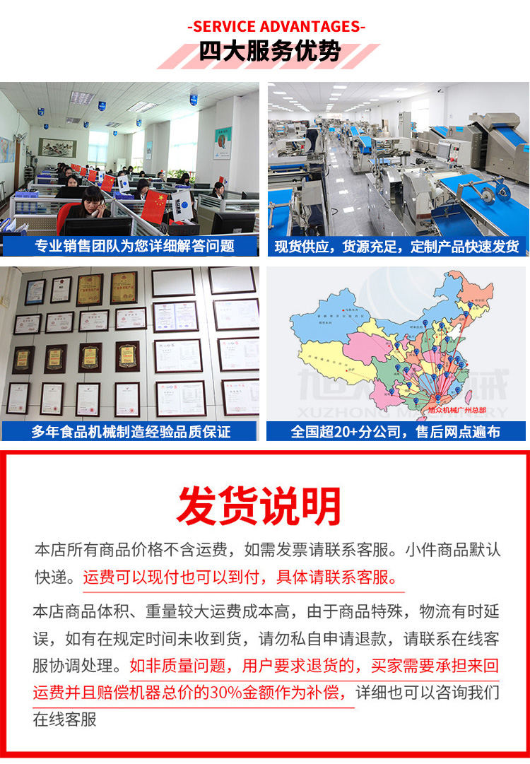 廣州旭眾食品機(jī)械有限公司是一家集科研開發(fā),生產(chǎn)設(shè)計,營銷服務(wù)為一體的現(xiàn)代化生產(chǎn)企業(yè)?,F(xiàn)代化生產(chǎn)車間,精湛制造技術(shù),所產(chǎn)機(jī)械歷經(jīng)市場重重考驗,不斷贏得海內(nèi)外客戶的贊譽。