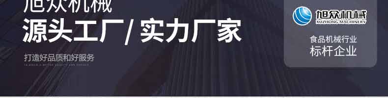 廣州旭眾食品機(jī)械有限公司是一家集科研開發(fā),生產(chǎn)設(shè)計(jì),營(yíng)銷服務(wù)為一體的現(xiàn)代化生產(chǎn)企業(yè)?,F(xiàn)代化生產(chǎn)車間,精湛制造技術(shù),所產(chǎn)機(jī)械歷經(jīng)市場(chǎng)重重考驗(yàn),不斷贏得海內(nèi)外客戶的贊譽(yù)。