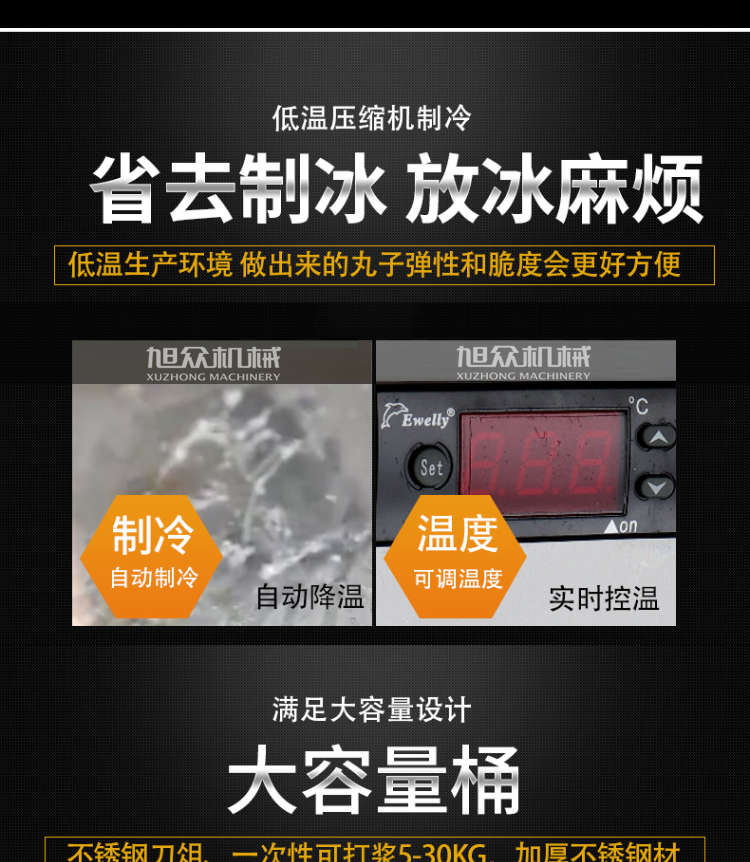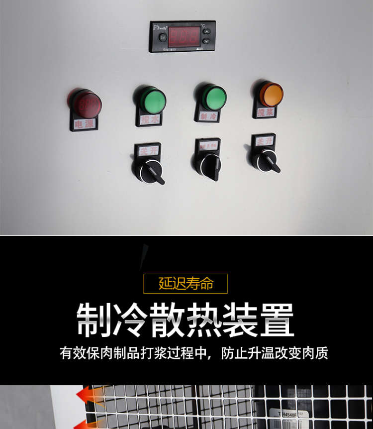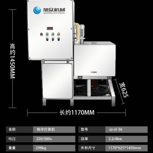 XZ-ZL-36制冷打漿機,滿足大容量設(shè)計,大容量桶不銹鋼刀俎、一次性可打漿530KG,加厚不銹鋼材。