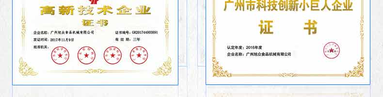 廣州旭眾食品機(jī)械有限公司是一家集科研開發(fā),生產(chǎn)設(shè)計(jì),營銷服務(wù)為一體的現(xiàn)代化生產(chǎn)企業(yè)。現(xiàn)代化生產(chǎn)車間,精湛制造技術(shù),所產(chǎn)機(jī)械歷經(jīng)市場重重考驗(yàn),不斷贏得海內(nèi)外客戶的贊譽(yù)。