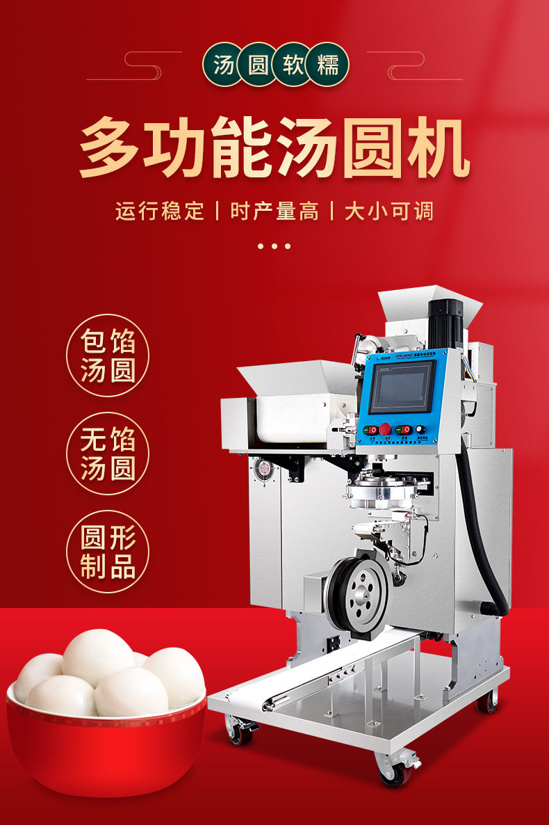 4000C湯圓機,多功能湯圓機,運行穩(wěn)定、時產(chǎn)量高、大小可調(diào)。制品多樣性生產(chǎn)各種大小規(guī)格不同的有餡湯圓,無餡湯圓、豆沙包、南瓜餅,芝麻球,地瓜丸,香芋丸,葉兒粑,青團,粘豆包等。