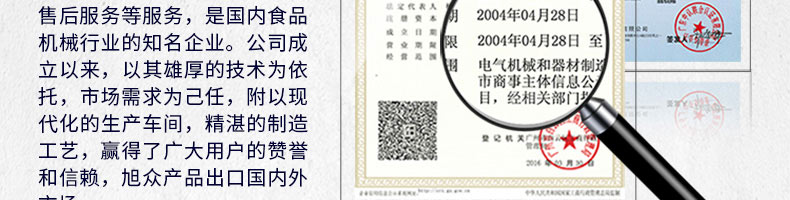廣州旭眾食品機(jī)械有限公司是一家集科研開(kāi)發(fā),生產(chǎn)設(shè)計(jì),營(yíng)銷(xiāo)服務(wù)為一體的現(xiàn)代化生產(chǎn)企業(yè)。現(xiàn)代化生產(chǎn)車(chē)間,精湛制造技術(shù),所產(chǎn)機(jī)械歷經(jīng)市場(chǎng)重重考驗(yàn),不斷贏得海內(nèi)外客戶(hù)的贊譽(yù)。