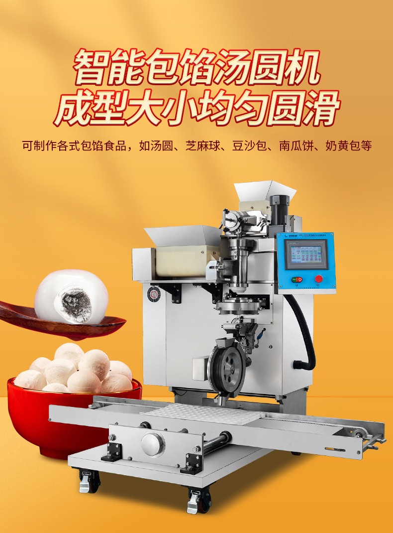 ◆送面、送餡均采用四絞龍結構,數(shù)字變頻調控,可任意調節(jié)面、餡輸送量及湯圓重量。可自動搓圓、成型,制品不易變形