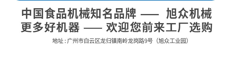 廣州旭眾食品機械有限公司是一家集科研開發(fā),生產設計,營銷服務為一體的現(xiàn)代化生產企業(yè)?,F(xiàn)代化生產車間,精湛制造技術,所產機械歷經市場重重考驗,不斷贏得海內外客戶的贊譽。