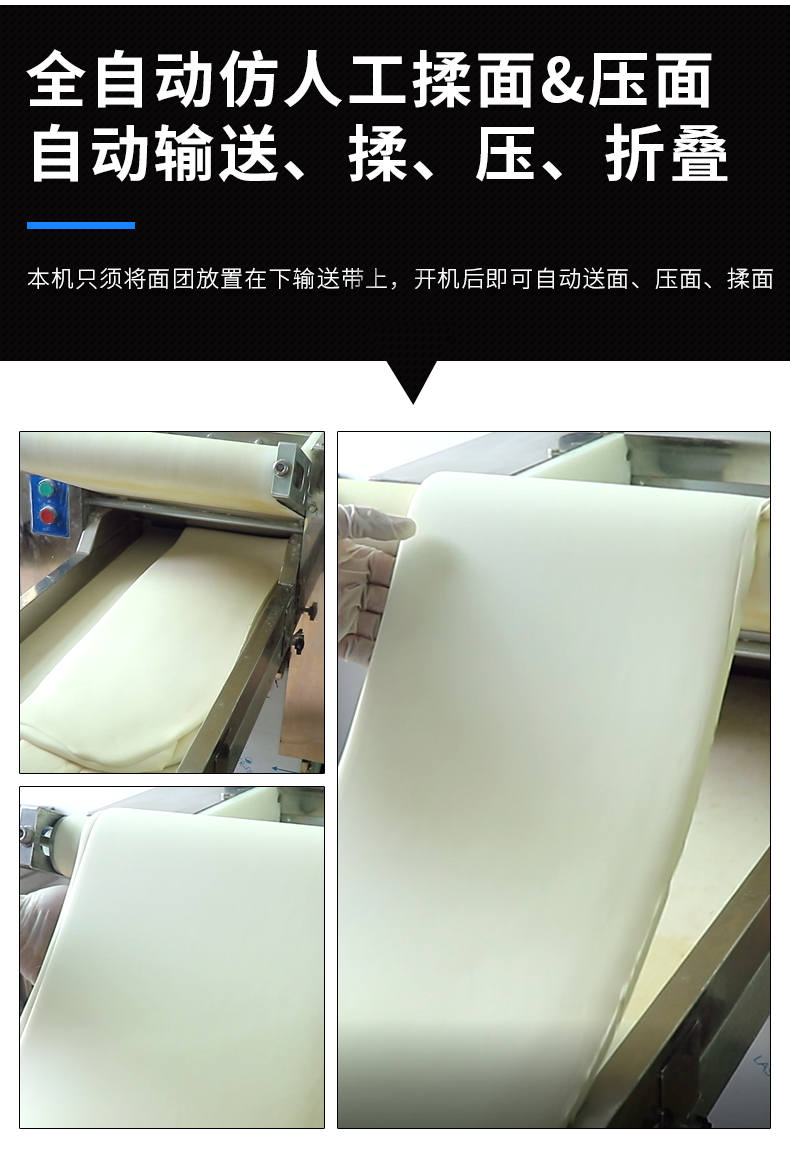 YMZD-350自動(dòng)壓面機(jī),自動(dòng)循環(huán)、厚薄可調(diào)。包子、餃子、饅頭,面館等場(chǎng)所適用。啟動(dòng)循環(huán)壓面、揉面。全自動(dòng)仿人工揉面,壓面自動(dòng)輸送、揉、壓、折疊。