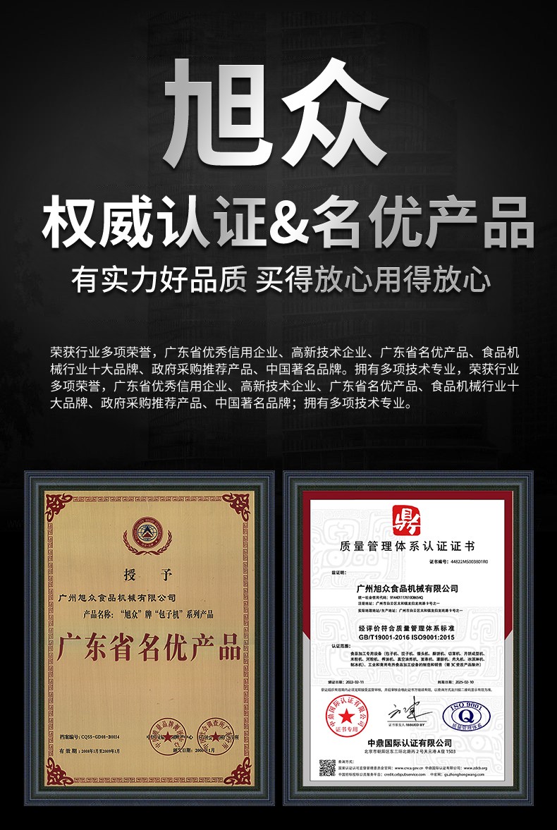 廣州旭眾食品機(jī)械有限公司是一家集科研開(kāi)發(fā),生產(chǎn)設(shè)計(jì),營(yíng)銷服務(wù)為一體的現(xiàn)代化生產(chǎn)企業(yè)?,F(xiàn)代化生產(chǎn)車間,精湛制造技術(shù),所產(chǎn)機(jī)械歷經(jīng)市場(chǎng)重重考驗(yàn),不斷贏得海內(nèi)外客戶的贊譽(yù)。