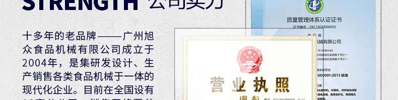 廣州旭眾食品機械有限公司是一家集科研開發(fā),生產設計,營銷服務為一體的現代化生產企業(yè)?,F代化生產車間,精湛制造技術,所產機械歷經市場重重考驗,不斷贏得海內外客戶的贊譽。