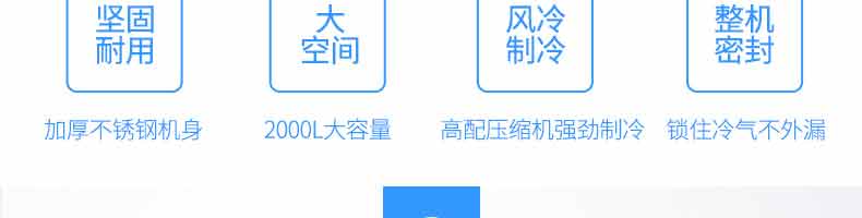 XZ-速凍柜,實力派,不妥協(xié)。4大強勢來襲,源自生活所需。堅固耐用、大空間、風冷制冷、整機密封、加厚不銹鋼機身,2000L大容量,高配壓縮機強勁制,令鎖住冷氣不外漏。